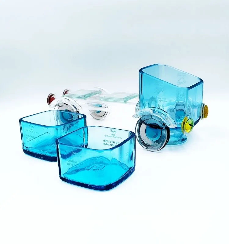 ➦ We upcycle glass bottles to promote sustainable living and mindful choices, reducing glass waste and its carbon impact. Our work respects all brand identities.