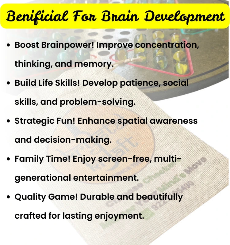 Experience the timeless allure of classic strategy with our Premium Chinese Checker & Marble Chess Board Game. This elegant, 16″ wooden board is crafted from high-quality HDMDF, reflecting premium wood craftsmanship and designed for endless fun. Elevate your family gatherings and parties with a game that not only entertains but also enhances brain function through its engaging play—HalmaMove-me increases brain function by exercising your mind with every move. Perfect for players aged 12 and above, this traditional Chinese toy game supports up to six players simultaneously, making it an ideal choice for creating lasting memories. Embrace the challenge, spark your competitive spirit, and enjoy an interactive game that brings family and friends together in a celebration of strategy and skill.
